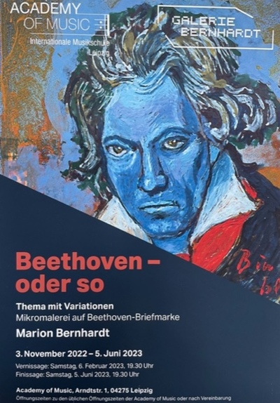 Seit 03. November 2022 hängt in den Räumen unseres Standorts in der Arndtstraße 1 eine neue Ausstellung der Mikrokünstlerin Marion Bernhardt unter dem Titel: Beethoven — oder so.